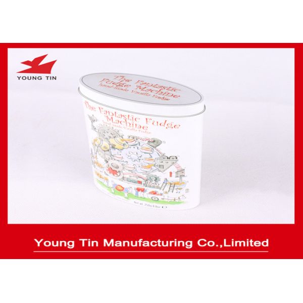 Custom Artwork CMYK Printed and Embossed Oval Candy Packaging Tin Box Container Images |